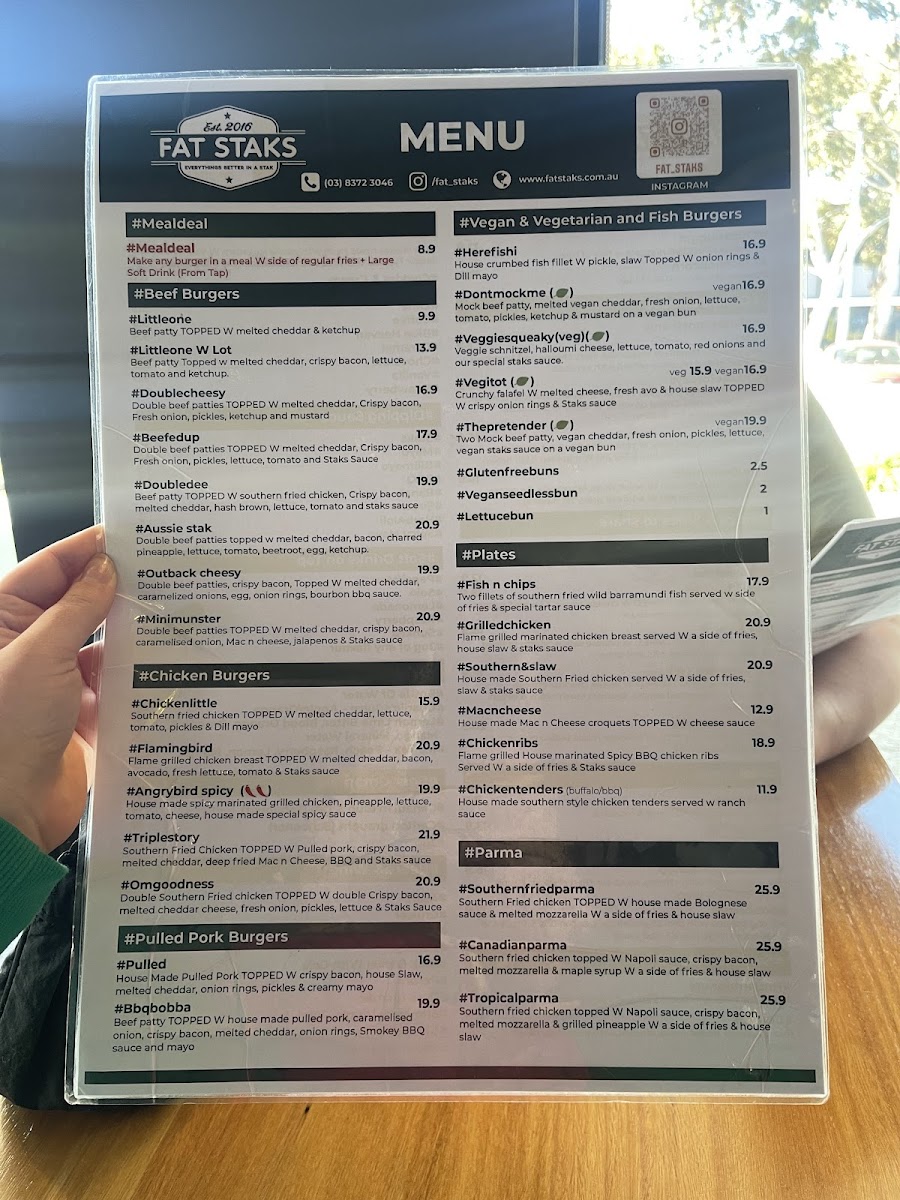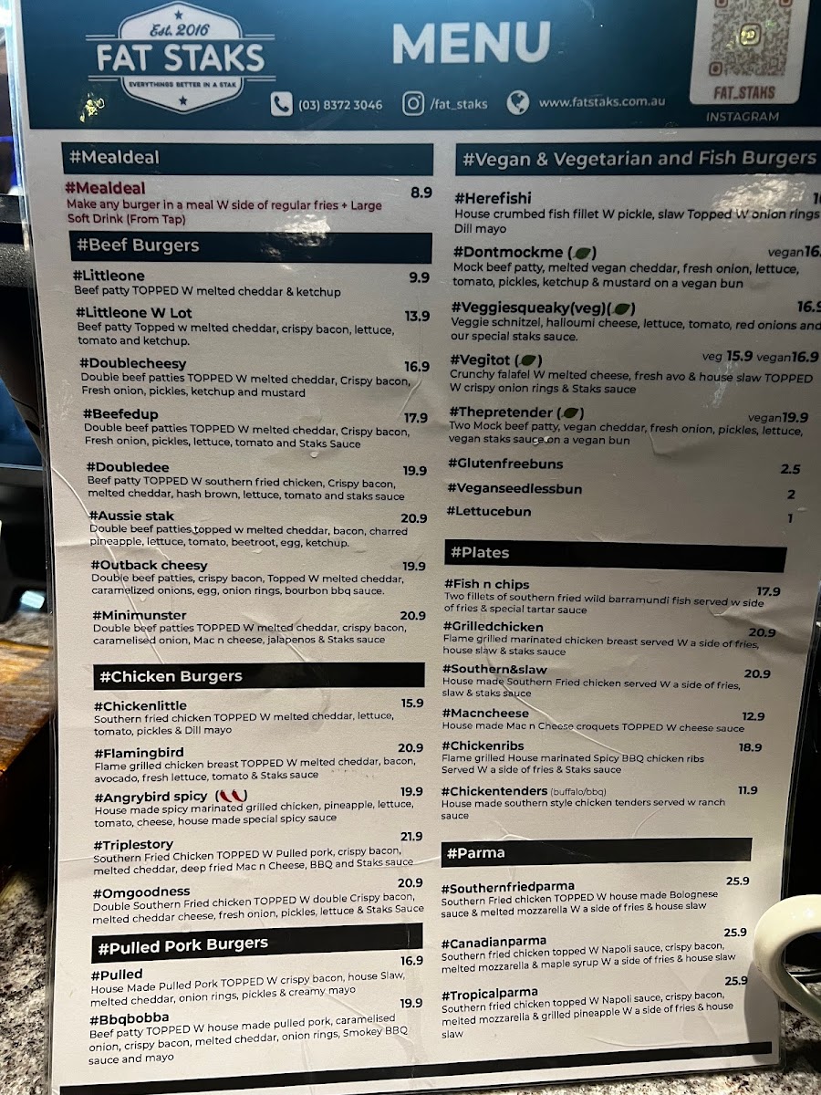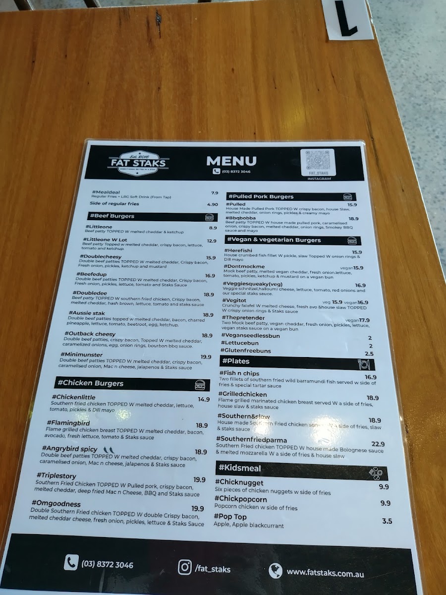 Welcome to Fat Staks, your go-to destination for indulgent comfort food in Bundoora, Victoria. The menu is creatively crafted, showcasing a range of delicious offerings that cater to all cravings. Notable highlights include the Fatty Finger Box, a beloved fan-favorite reminiscent of Raising Cane's, featuring crispy chicken tenders paired with addictive dipping sauce. For those with a penchant for fries, the Fatty Snackpack with pulled pork and cheese sauce is an explosion of flavor.
